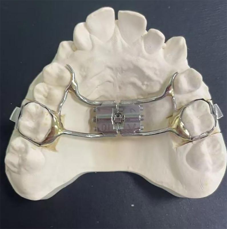 Schauen wir uns zunächst an, wie ein Expander aussieht. Für Kinder mit maxillärer Stenose, die sich in ihrem Wachstumsschub befinden, kann die allmähliche Öffnung der Mid -Palatal -Naht das Bindegewebe in der Naht dehnen, die Bildung von neuem Knochengewebe stimulieren und somit die Breite des Basalknochens und des Zahnbogens erhöhen. Je jünger der Patient im Allgemeinen, desto offensichtlicher die neue Knochenablagerung und desto leichter ist es, den Basalknochen zu erweitern. Im Gegenteil, bei älteren erwachsenen Patienten, wenn nur ein Expander verwendet wird, wird die Erweiterung des Zahnbogens hauptsächlich durch die bukkale Bewegung von Zähnen erreicht. In solchen Fällen schlagen beide vor, dass das chinesische Zahnlabor und das WM -Zahnlabor bessere Ergebnisse erzielen können, indem die midpalatale Naht (chirurgisch unterstützte schnelle palatinale Expander, Sarpe), gefolgt von einer Expansionstherapie, um die midpalatale Naht (chirurgisch unterstützte schnelle palatinale Expander) zu unterstützen.